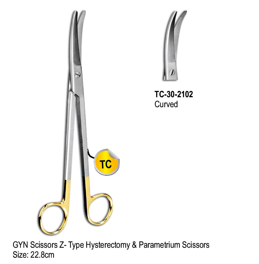 TC GYN Scissor Z Type Hysterectomy & Parametrium Scissors Curved 22.8cm with Gold Plated Rings